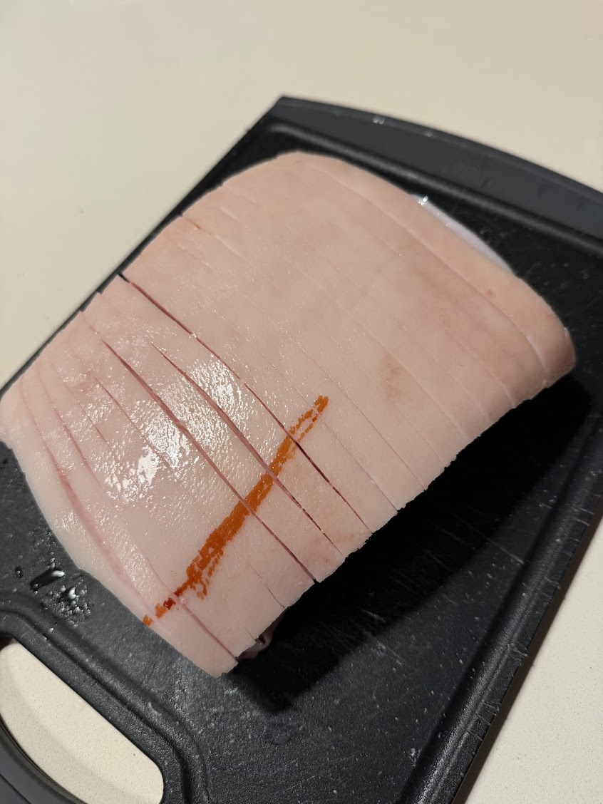 - Tjek og klargør sværene: Start med at gennemgå sværene grundigt. Det sker ofte, at slagteren ikke har skåret dem helt igennem ude i enderne. Sørg for at skære dem helt fri af hinanden, men vær meget påpasselig med ikke at skære ned i selve kødet. Hvis du rammer kødet, vil kødsaften trække op under tilberedningen og gøre sværene bløde i stedet for sprøde.