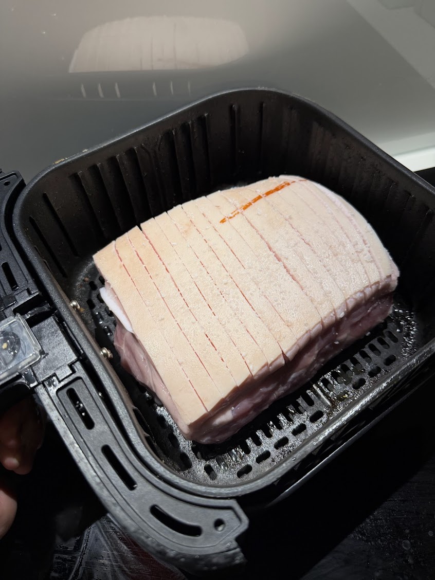 Flæskesteg i Airfryer med sprøde flæskesvær og sovs