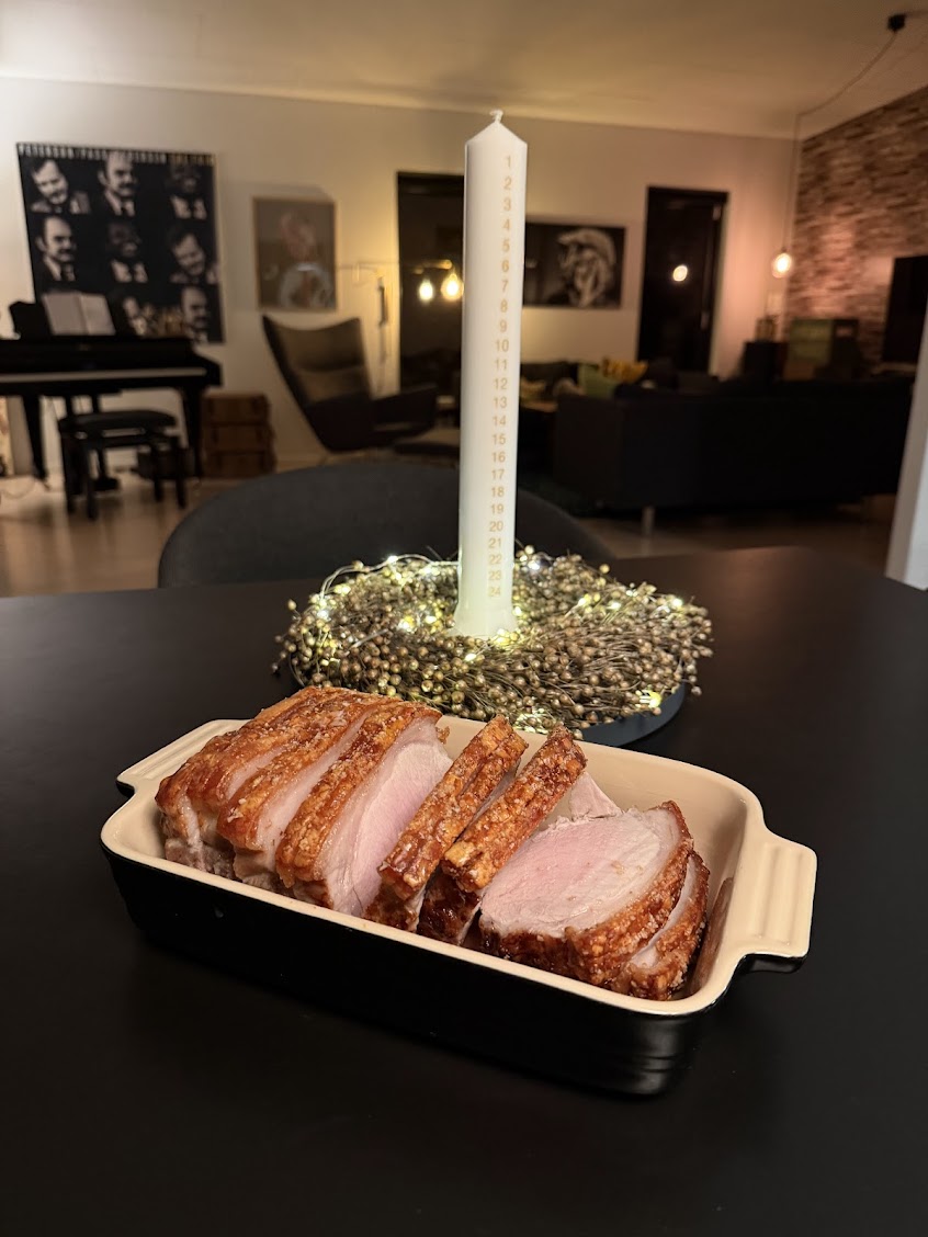 - 1.5 kg flæskesteg (1.5-2 kg kamsteg). Ribbensteg kan bruges som alternativ.