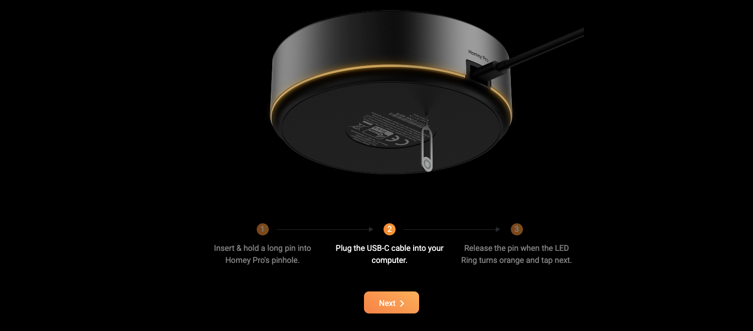 Why? Because the new brain is completely empty. It doesn’t even know it’s a Homey yet.