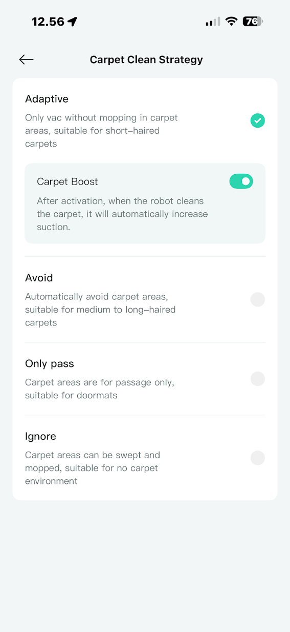 Appen er faktisk virkelig god. Du kan let bestemme hvor robotten ikke må køre hen, og du kan opsætte, så den f.eks. støvsuger i nogle rum, og både støvsuger og vasker andre. Det er ret genialt. Du kan også markeret et område på kortet, så den f.eks. kun tager rundt om køkkenøen.